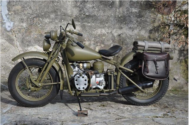 HARLEY-DAVIDSON, XA Boxer Shaft Drive, US-Army (Prototyp)Hubraum 750 ccm, 23 PS, Baujahr 1942 Getriebe 4-Gang mit Kardanantrieb,Rohrrahmen gefedert und Springergabel mit Stossdämpfer Diese XA mit Boxermotor und Kardanantrieb ist eine Rarität und vermutlich die einzige in der Schweiz. Der Motor und die Mechanik sind revidiert. Obwohl die WLA ein gutes Allzweck-Militärmotorrad war, erbat die US-Army von Harley Davidson eine Kardanmaschine. Harley wandte sich in Richtung des Feindes, um Ideen zu bekommen. Die BMW R11 wurde tatsächlich kopiert. Eine Testreihe von 1000 XA Maschinen wurden hergestellt, ebenso eine Prototypreihe von Indian Kardanmaschinen (siehe Indian Modell 841). Es war so geplant, dass die bessere der Maschinen in grosser Stückzahl von der Armee bestellt werden sollte. Keines der beiden Motorräder entsprach den Vorstellungen der US-Army, welche stattdessen den Willys-Jeep als Frontfahrzeug bevorzugte, aber auch weitere WLA Motorräder bestellte, und so das kurze Leben der XA beendete. Weitere Auskünfte und Preisangaben bei uns im Geschäft bei einer Besichtigung.