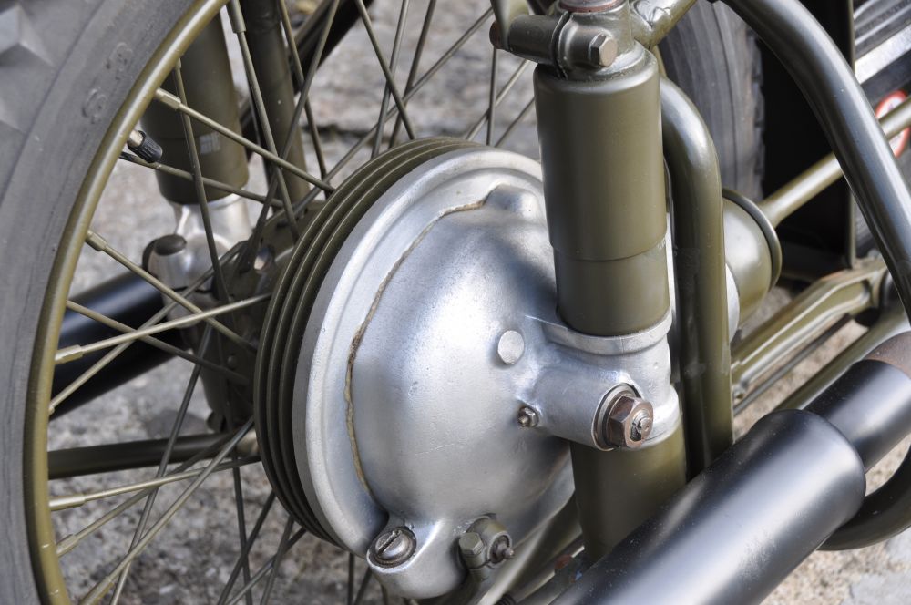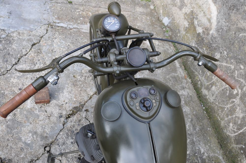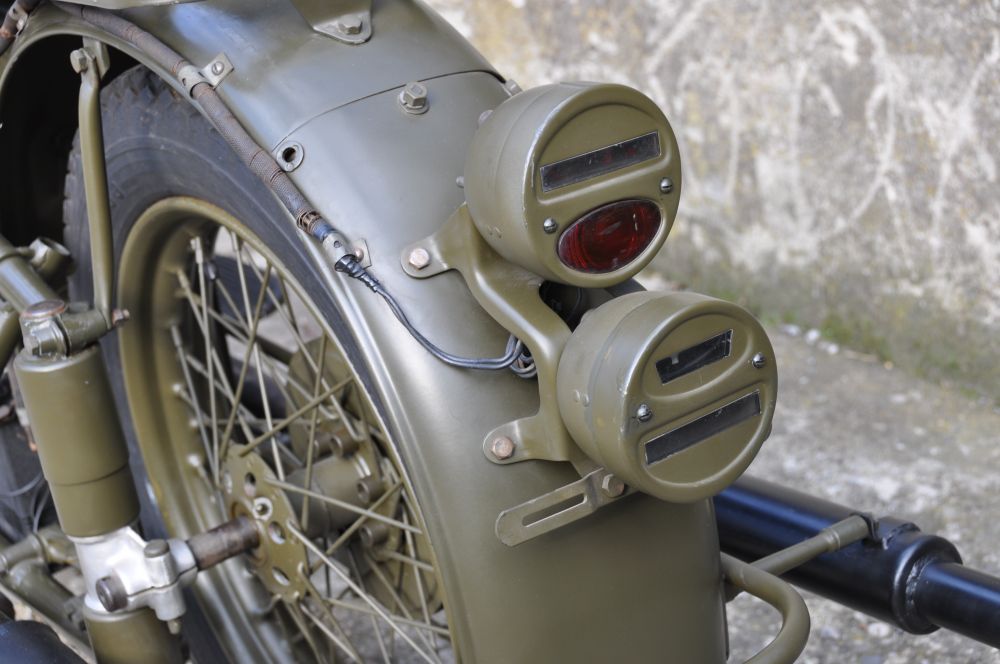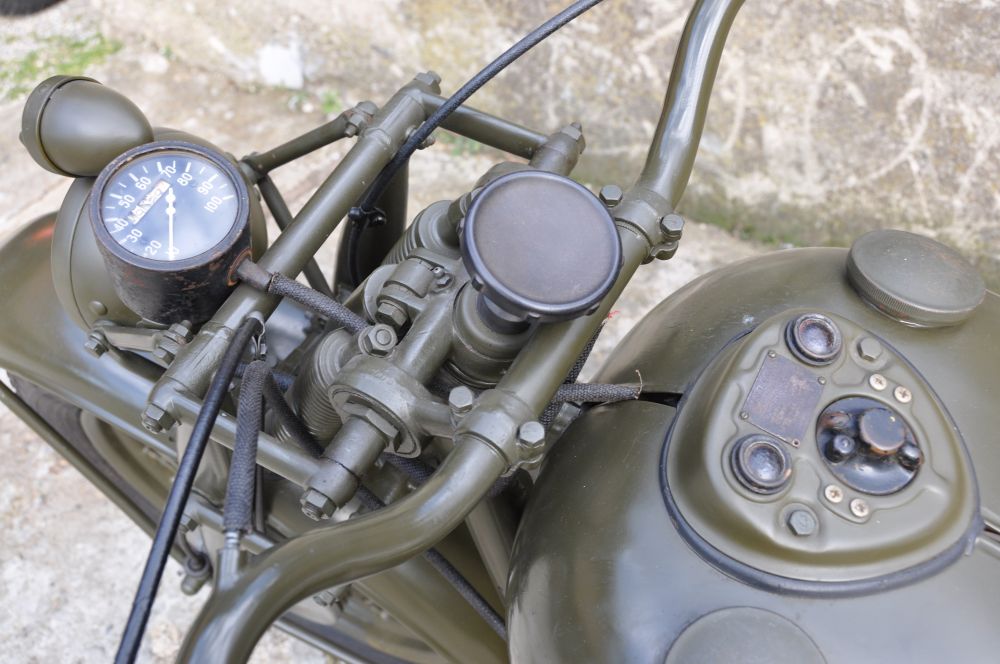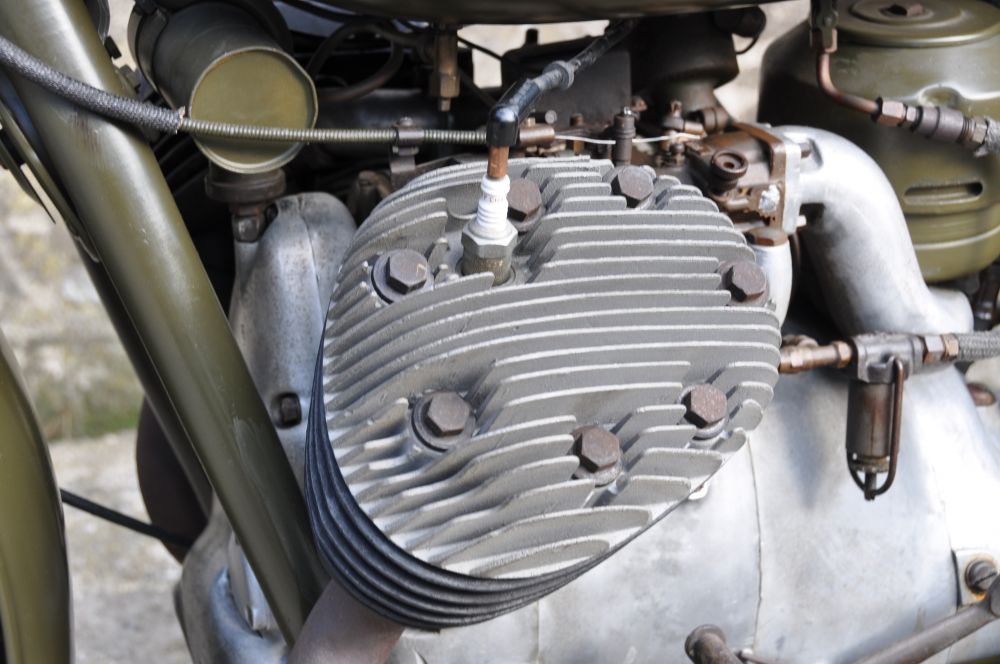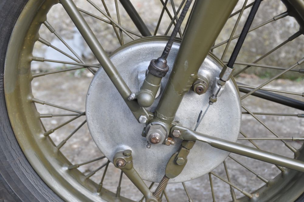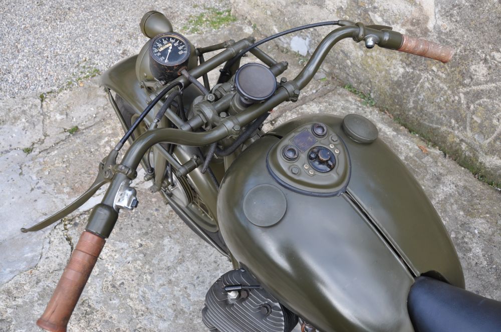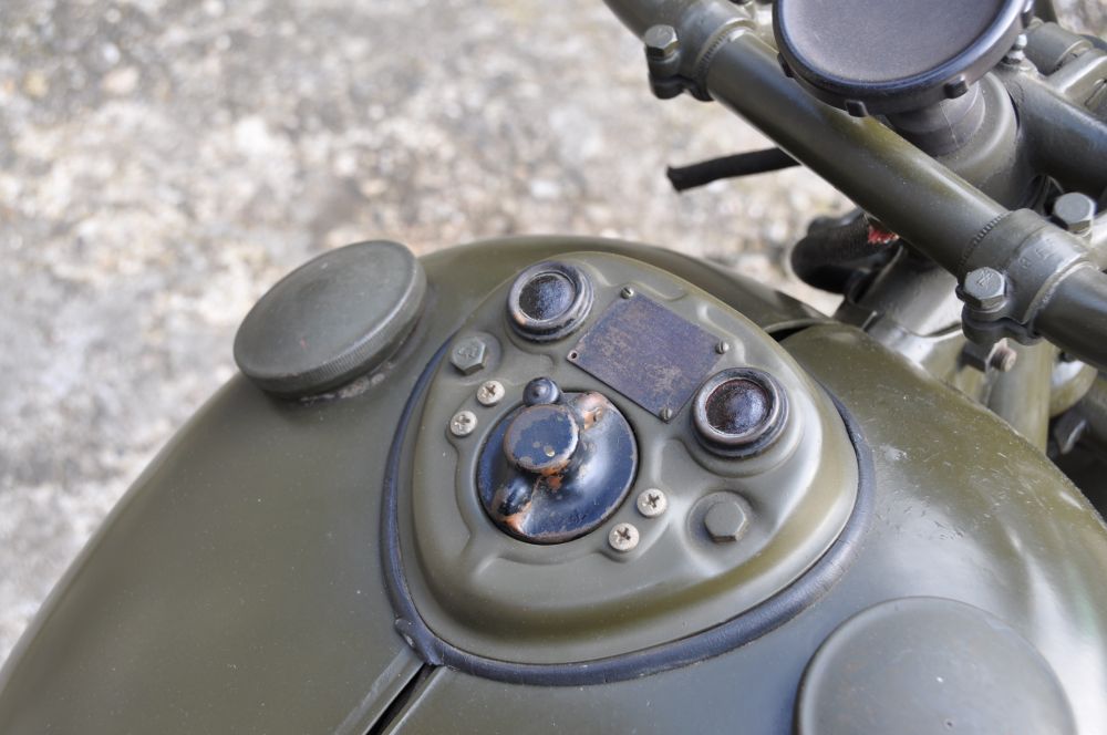 Eine Rarität und vermutlich die einzige in der Schweiz. Die US-Army erbat von Indian und Harley-Davidson eine Kardanmaschine für den Einsatz in der nordafrikanischen Wüste zu bauen. Harley wandte sich in Richtung des Feindes, um Ideen zu bekommen. Die BMW R11 wurde tatsächlich kopiert. Indian aber baute eine total neue Konstruktion, das Modell 841, ein ungewöhnliches Motorrad. Der Zweizylinder V-Motor wurde quer eingebaut. Einige Motorenteile stammten von der 750er Sport Scout, und zum ersten Mal ging Indian zur Fussschaltung über. Es war so geplant, das die bessere der Maschinen in grosser Stückzahl von der Armee bestellt werden sollte. Weder die XA von Harley noch die 841 von Indian entsprachen den Vorstellungen der US-Army, welche stattdessen den Willys-Jeep als Frontfahrzeug bevorzugte. Einige Details aus der 841er Entwicklung flossen bei den Nachkriegs-Serienmodellen ein. So zum Beispiel: Gummilagerung für den Lenker, die Vorderradgabel sowie die Radnaben und Bremsen. Die meisten dieser wenig produzierten 841er Indian wurden nach dem Krieg auf „zivil“ umgebaut und lackiert. Die 841er im ursprünglichen Militärtrimm sind eine Seltenheit. Weitere Auskünfte und Preisangaben bei uns im Geschäft bei einer Besichtigung.