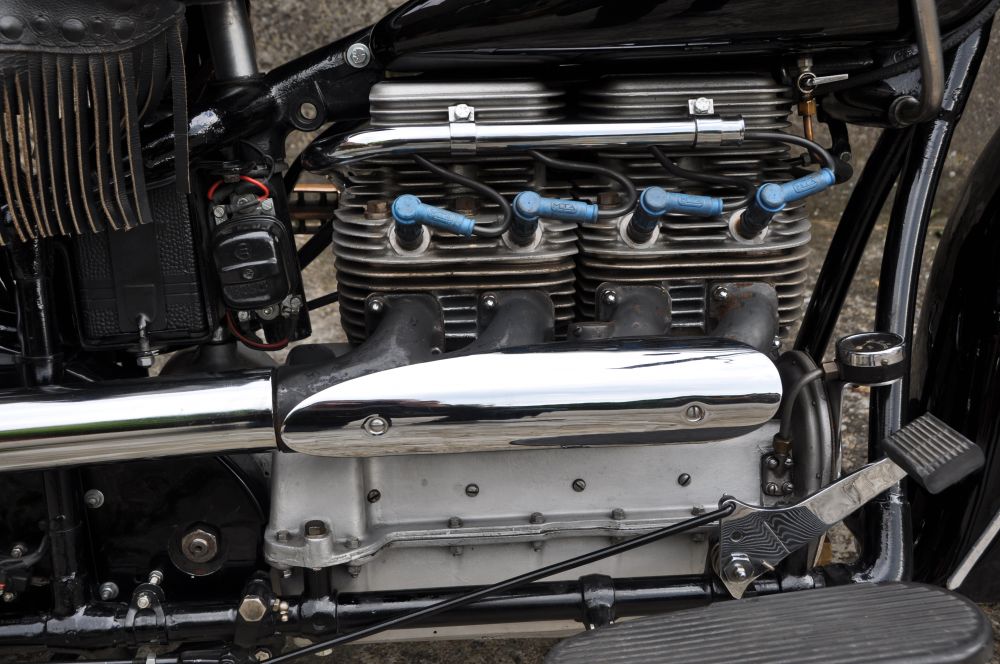 1940 folgten Hinterradfederung und die grossen Schutzbleche mit seitlichen Radabdeckungen, wie sie gleichzeitig auch an der Chief eingeführt wurden. Der Motor war derselbe wie er 1938 fertig entwickelt wurde. Selten sah ein Motorrad so gelungen und perfekt aus wie die letzten Indian Four. Die Modell Reihen 1940 bis 1942 werden heute die Duesenberg‘s der Motoräder genannt und erzielen unter Liebhabern Spitzenpreise. Heute gehören diese Indian Four zu den gesuchtesten Raritäten.